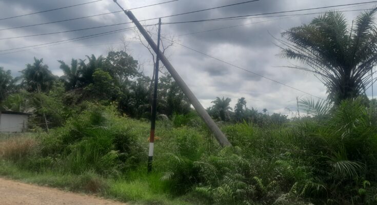 ” Wis enek 2 tahunan tiang PLN yang miring disitu.kalau yang miring miring banyak.ado juga yang sampai roboh di RT 05 Dusun Sarimulyo sampai saiki belum diperbaiki.kira kira sudah 2 atau 3 tahun yang lalu kejadian tiang yang roboh,” sebut kades saat dikonfirmasi melalui telepon WhatsApp.Senin (17/11/2025).