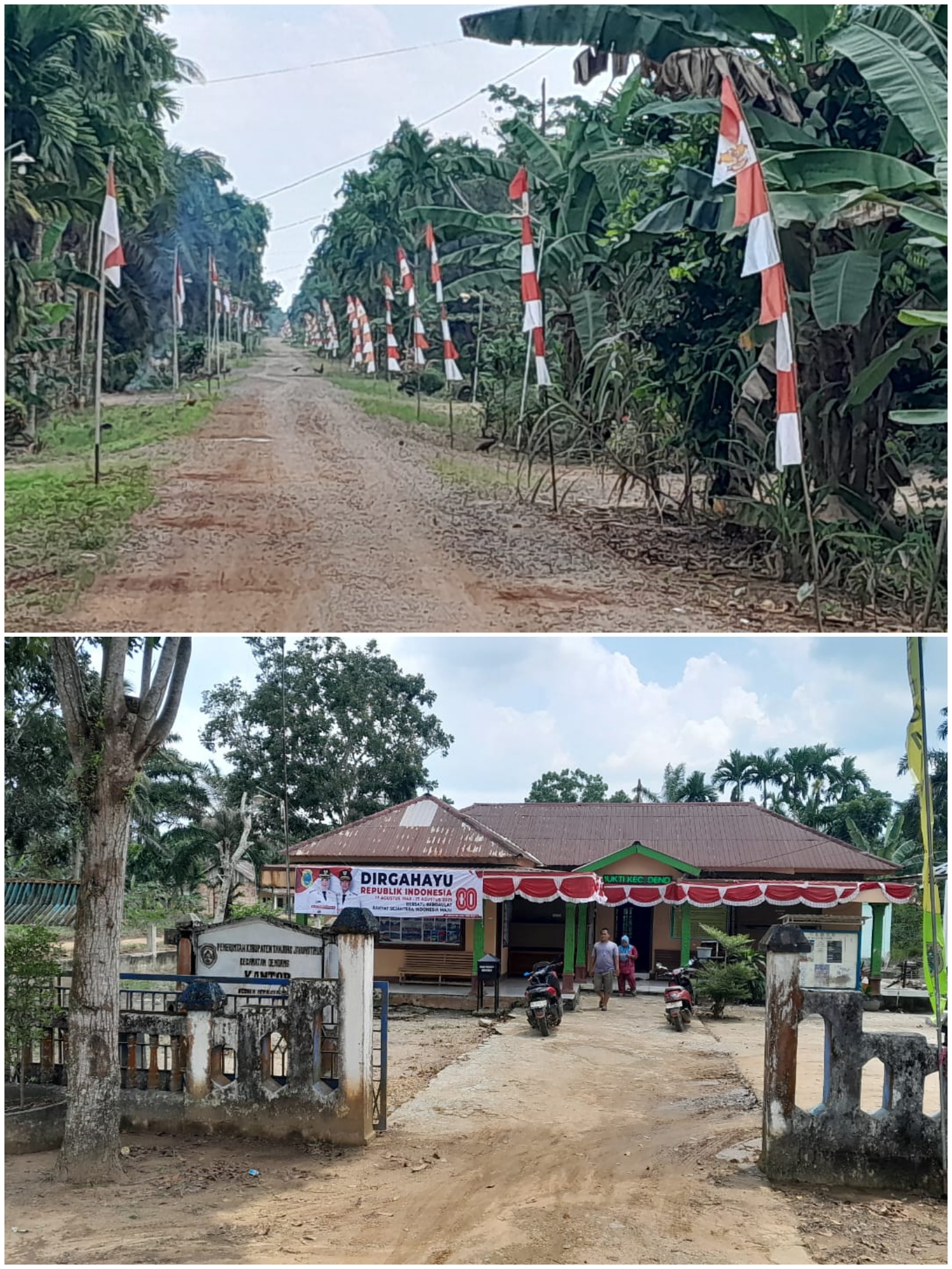 Seperti bendera dan umbul-umbul dan juga gambar Bupati Hj. Dilla Hikma Sari serta Wakil Bupati Muslimin Tanja tidak ketinggalan menghiasi kantor Desa. Semuanya dikerjakan secara bersama-sama dan gontong royong oleh seluruh pegawai desa dan warga .