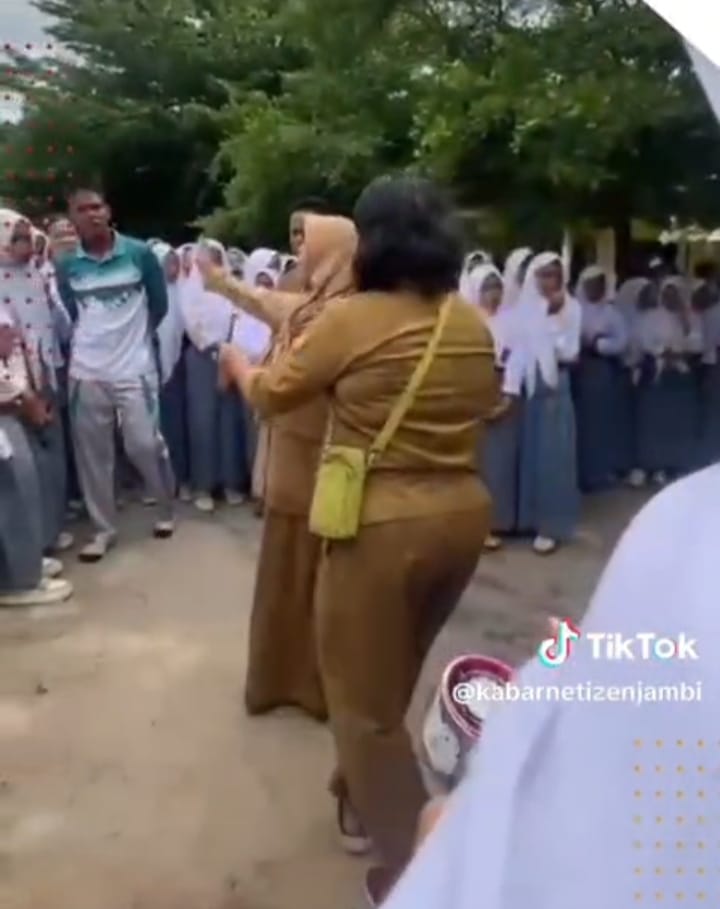 Video pertengkaran itu direkam oleh seseorang yang berada di lokasi dan terlihat berlangsung di lapangan sekolah, disaksikan sejumlah guru dan siswa. Video tersebut kemudian beredar luas di TikTok dan media sosial lainnya hingga menjadi perhatian publik.